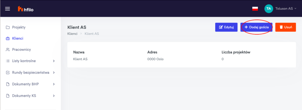 Od teraz możesz dodać klienta do swoich projektów w aplikacji Hfilo. Dzięki wygodnemu i intuicyjnemu panelowi Twój klient będzie miał wgląd do dokumentacji tylko tych projektów, do których został przypisany.