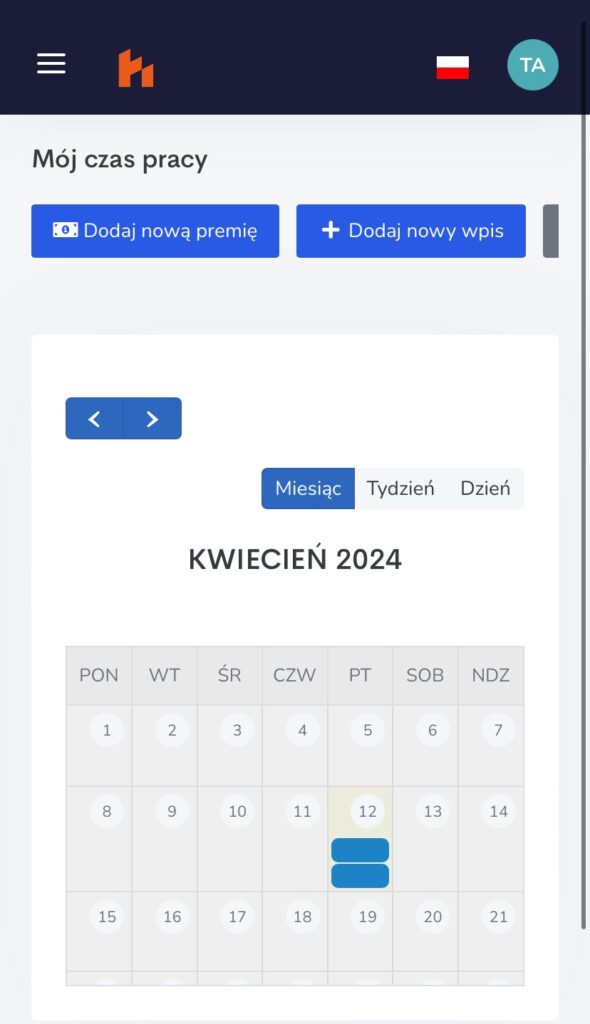 Jeżeli częściej korzystasz z naszej aplikacji na telefonie niż na komputerze, mamy dla Ciebie świetne wieści! Wprowadziliśmy usprawnienia w widoku kalendarza na urządzeniach mobilnych. Od teraz, korzystając z aplikacji na smartfonie, masz pełny wgląd na cały miesiąc swojej pracy. Te zmiany mają na celu zwiększenie komfortu użytkowania, umożliwiając Ci bardziej efektywne planowanie i monitorowanie zadań bez konieczności przewijania w poszukiwaniu odpowiednich informacji.